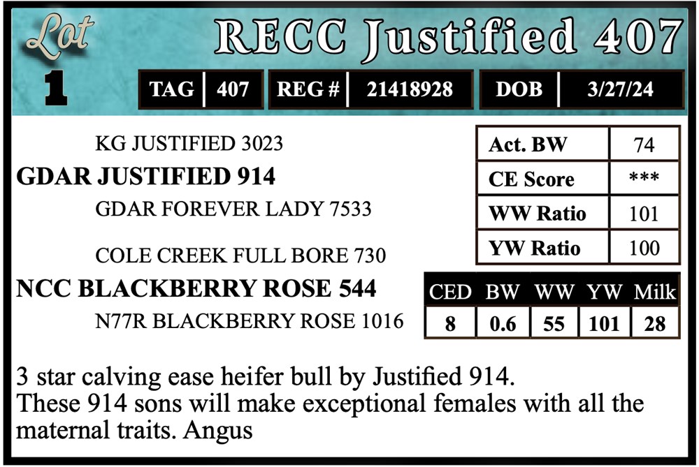 3 star calving ease heifer bull by Justified 914.
